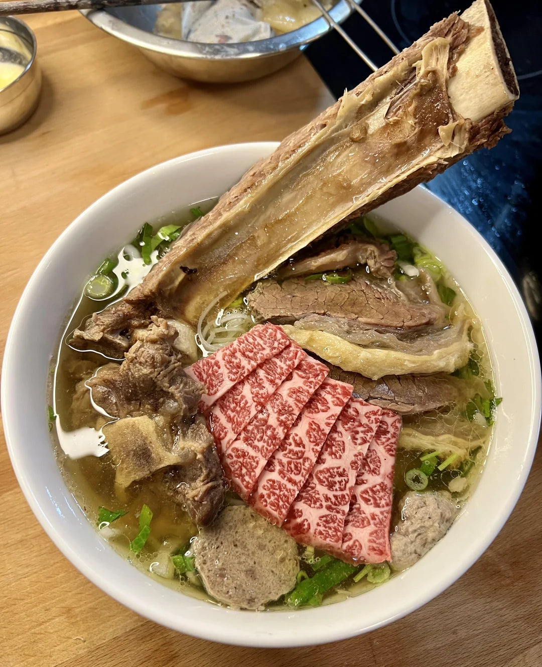 Wagyu Beef Pho is a delicious and aromatic dish that elevates traditional Vietnamese pho with the luxurious richness of Wagyu beef. Renowned for its exquisite marbling, Wagyu adds exceptional depth of flavor and tenderness to this comforting soup. Thinly sliced Wagyu cooks perfectly in a savory broth crafted from aromatic spices like star anise, cinnamon, and ginger, resulting in melt-in-your-mouth pieces. Served with soft rice noodles and fresh herbs like basil, cilantro, and mint, each bowl offers a delightful explosion of flavors and textures. This dish is not just a meal; it’s a culinary experience that warms the soul, perfect for special occasions or cozy dinners at home.